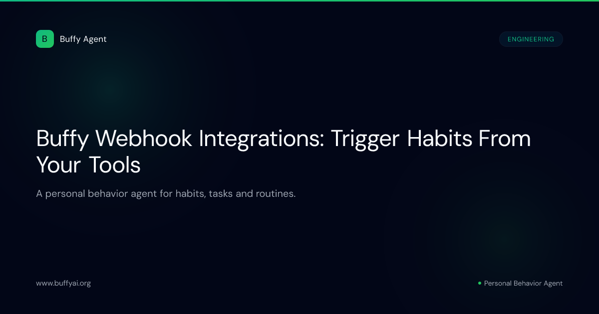Webhooks let you trigger Buffy activities — reminders, routines, tasks — from external events: a deployment finishing, a calendar block ending, a form submission, a cron job. You build something; Buffy knows about it.