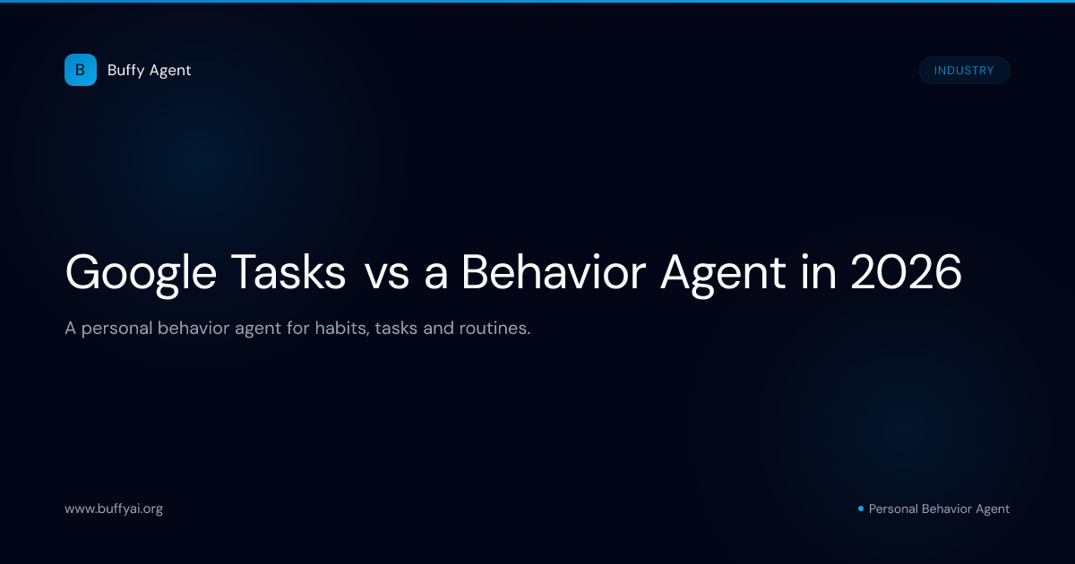 The honest framing: Google Tasks and behavior agents are not competing for the same job. Google Tasks is optimized for capture and retrieval — what needs to happen, surfaced where you work. A behavior agent is optimized for behavioral change — what actually happens, why it doesn't, and how to adjust.
